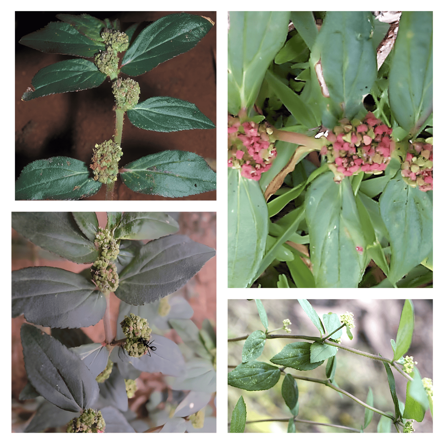 | 9 | Acalypha indica L. | Euphorbiaceae | Kuppu, Khokali, Chuda | Euphorbiaceae | Anthelmintic, Cough and Cold, Ear pain, Skin Diseases and Snake Bite. |